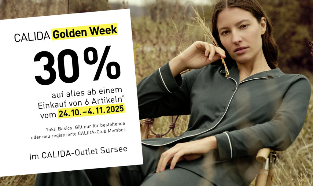 Profitieren Sie vom 24. Oktober bis 4. November 2025 von unserem attraktiven Angebot im CALIDA Outlet in Sursee.